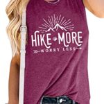 Women Funny Graphic Tanks Hike More Worry Less Workout Camping Hiking Sleev…