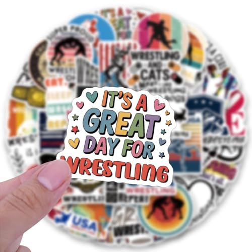 53pcs Wrestling Stickers for Water Bottle, Cool Sport Waterproof Vinyl Stickers for Adult Kids Teen Girl Laptop Skateboard Bike Guitar Laggage Bicycle Travel Case Helmet